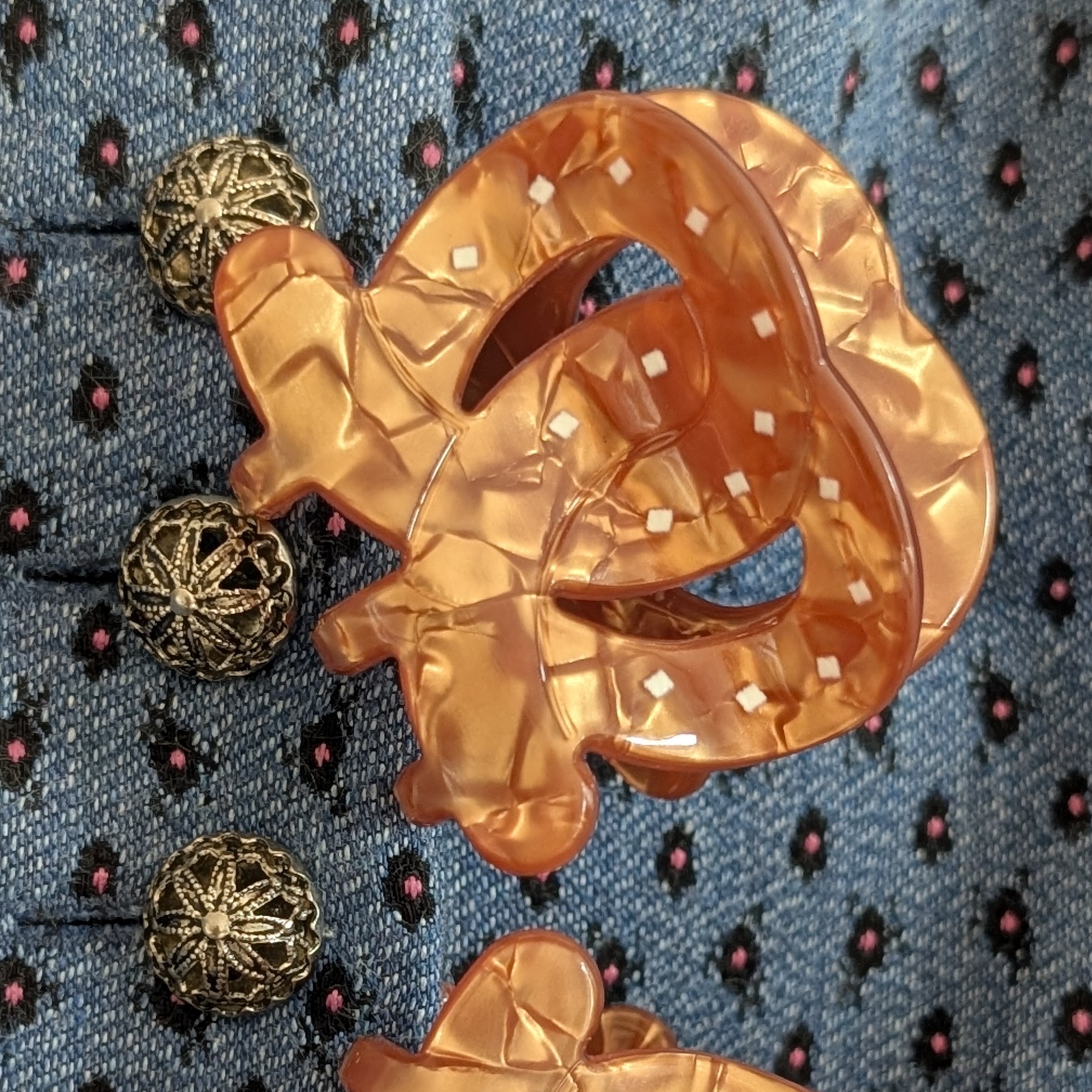 Unsere handgemachten Haarspangen sind hochwertig gearbeitet, bequem zu tragen und aus Celluloseacetat gefertigt.