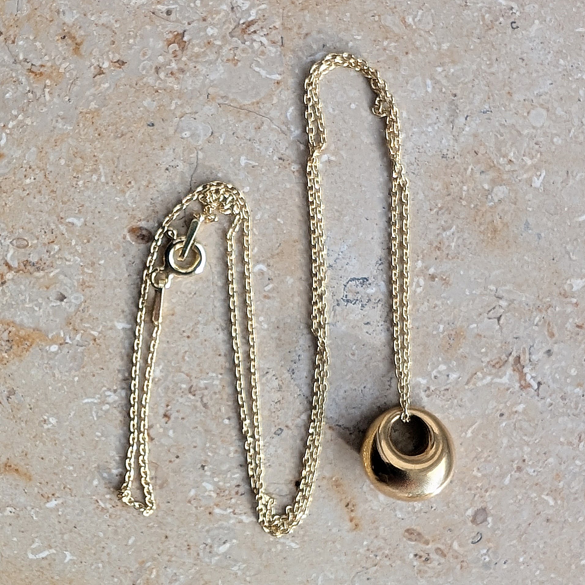 Unser Mini Donut ist ein organisch geformter Ring, der eine filigrane Halskette umarmt und deinem Look einen zeitlosen, classy Stil verleiht.